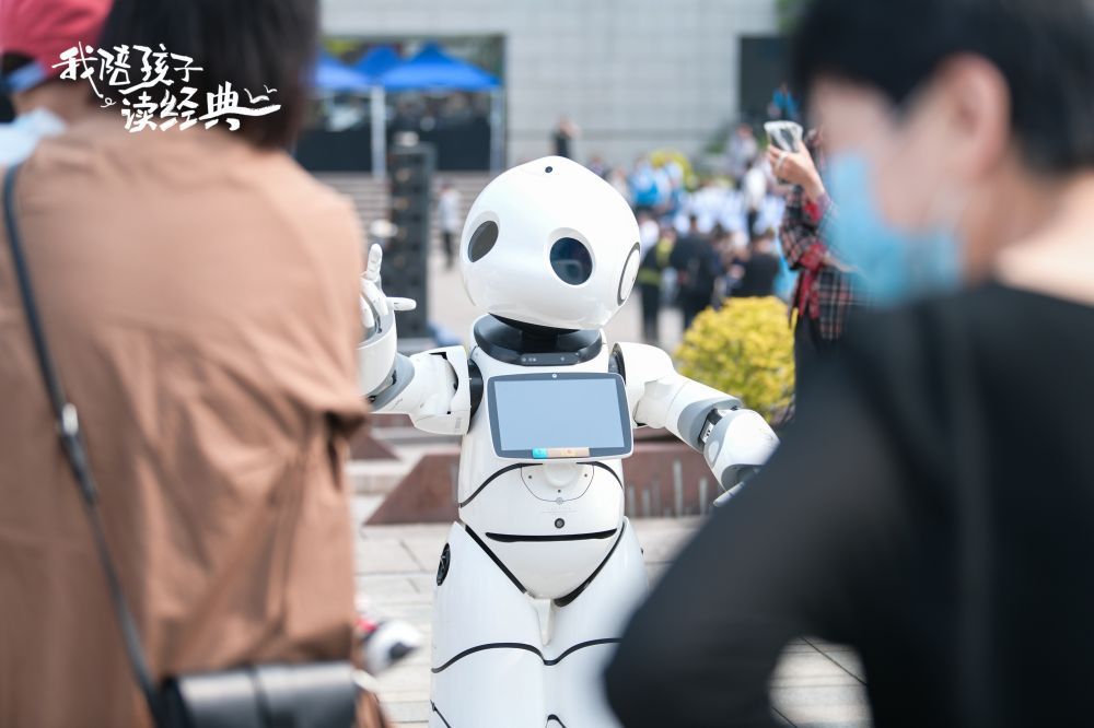 在科技互動(dòng)區(qū),可以近距離感受前沿科技,與3臺(tái)機(jī)器人和1臺(tái)機(jī)器狗進(jìn)行互動(dòng),激發(fā)探索知識(shí)的興趣。