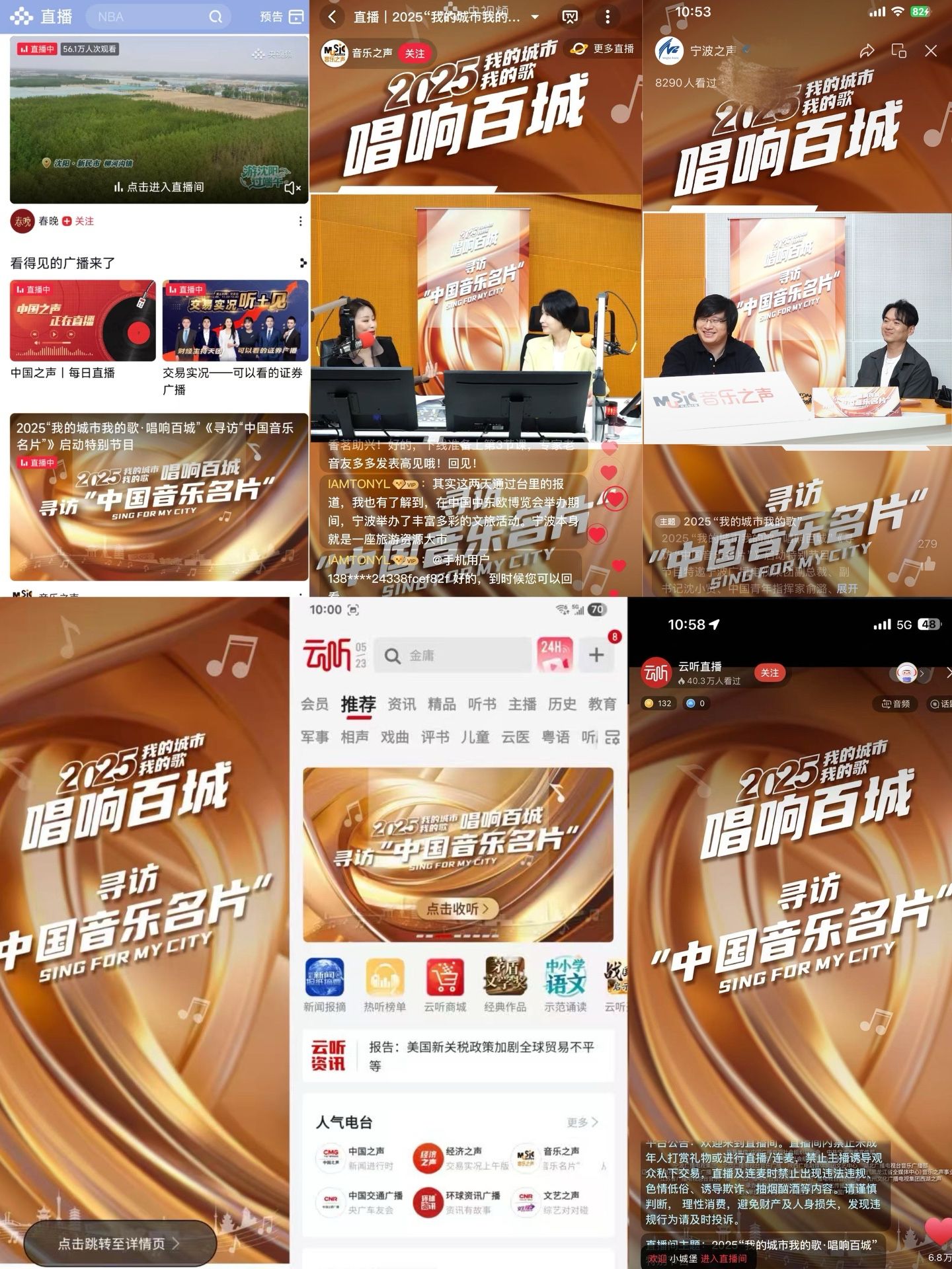 為打造這場音樂與城市的雙向奔赴,項目團隊前期進行了大量的溝通和策劃工作,聯(lián)動北京、河北、黑龍江、陜西、湖北、遼寧、杭州、江蘇、貴州等10家省、市級主流媒體主播,錄制了《我和我的家鄉(xiāng)音樂》系列音頻,在一場穿行東西南北的音樂旅行中,解鎖了城市的寶藏名片,用音樂的語言傳遞城市的故事和精神,喚起人們對中國城市的記憶情感和文化想象。