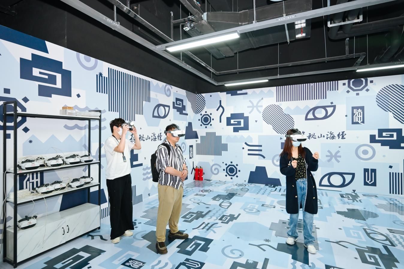 展館分為“靜態(tài)展陳”“光影互動”“VR大空間”和“文創(chuàng)體驗”四大主題展區(qū),面積近1000平方米,通過故事繪畫、創(chuàng)意雕塑、裝置藝術(shù)、多媒體光影等多種藝術(shù)表達方式,將《山海經(jīng)》中的神獸怪物、神話人物、奇異國家、山川地貌等內(nèi)容形象直觀地呈現(xiàn)在游客面前,讓平面的文字變得立體和豐富。游客還能戴上VR設(shè)備,身臨其境般地感受《后羿射日》《女媧補天》的神話故事,沉浸式感受山海奇幻元宇宙,在寓教于樂中體會中國上古神話的浪漫之美。文創(chuàng)區(qū)特別設(shè)置集章打卡活動,提供100枚主題印章,可免費收集并定制專屬“山海神獸冊頁”。