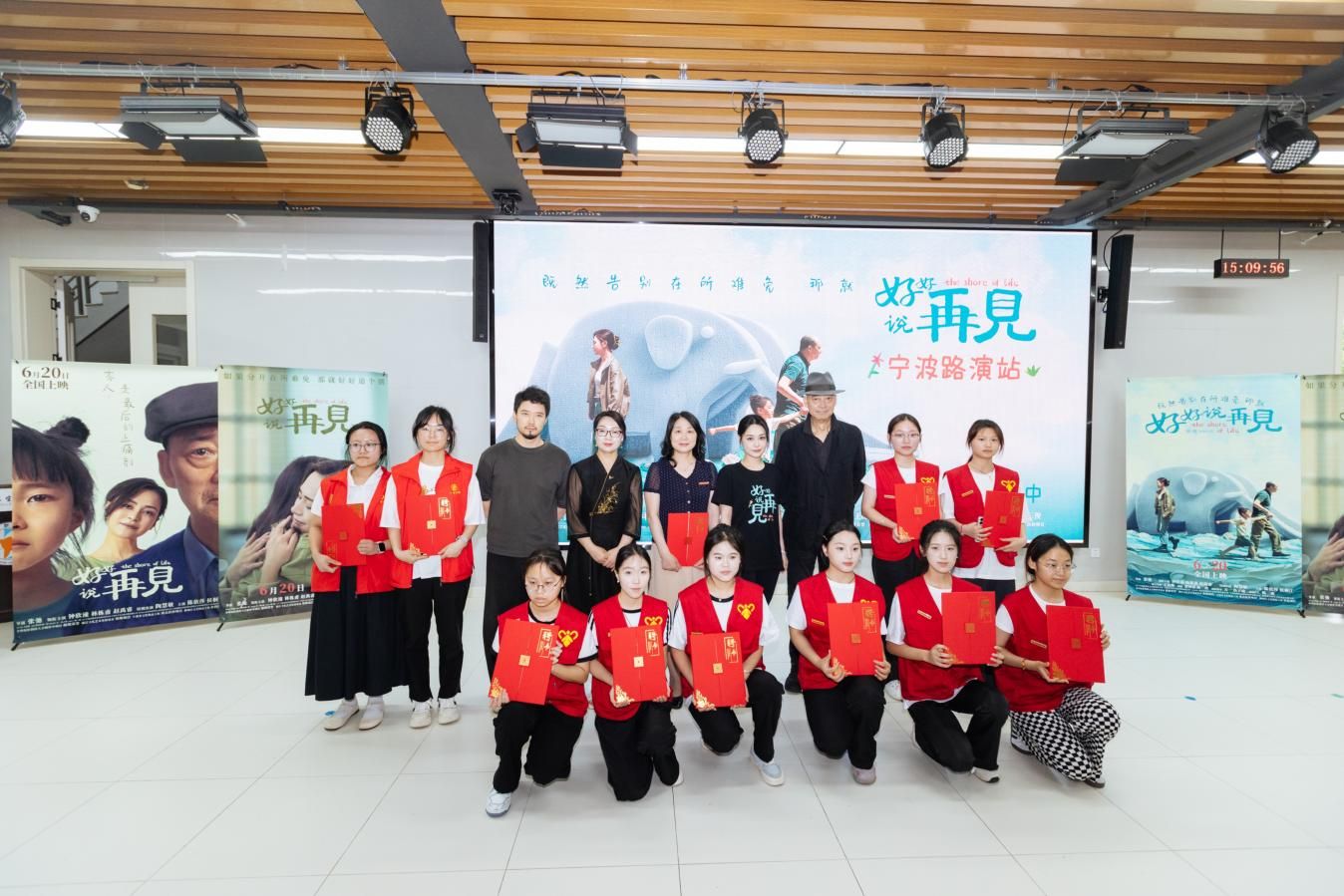 由寧波廣電集團(tuán)旗下寧波影視藝術(shù)有限責(zé)任公司領(lǐng)銜出品的電影《好好說再見》,于6月20日至21日在上海國(guó)際電影節(jié)期間舉行了首映和路演,第二站路演則選擇了影片的拍攝地寧波。6月22日,在寧波衛(wèi)生職業(yè)技術(shù)學(xué)院和四家影城,影片總制片人兼編劇陳三俊、導(dǎo)演張弛以及領(lǐng)銜主演鐘欣潼、林棟甫,與觀眾進(jìn)行了面對(duì)面地深入交流。