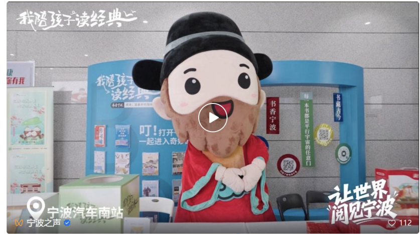 快閃活動(dòng)中,天一閣“閣主大大”人偶一出現(xiàn)就成為了全場(chǎng)焦點(diǎn),“奶呼呼”的卡通形象吸引著孩子們紛紛上前擊掌、合影?!伴w主大大”與孩子們親切互動(dòng),候車大廳里回蕩著陣陣歡聲笑語(yǔ)。