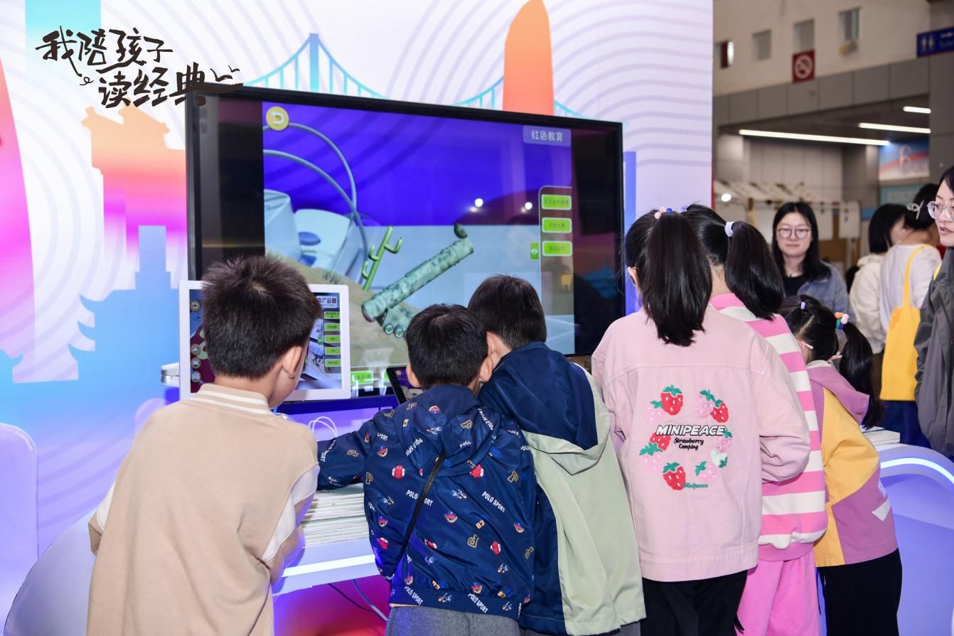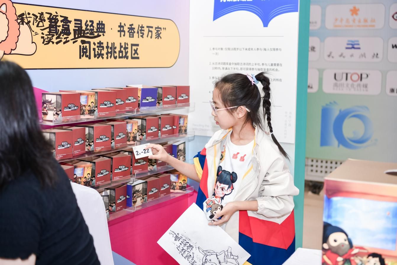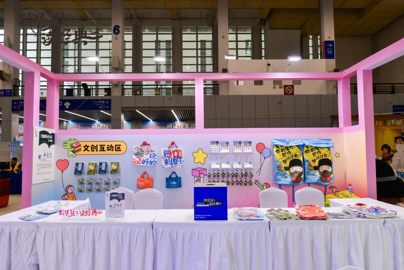 位于第十屆浙江書展6號(hào)館的“我陪孩子讀經(jīng)典”少兒館以“經(jīng)典閱讀+互動(dòng)體驗(yàn)”為核心,打造集優(yōu)質(zhì)讀物、文化傳承與趣味互動(dòng)于一體的親子閱讀空間,讓經(jīng)典浸潤(rùn)童心、閱讀成為家庭共同成長(zhǎng)的美好紐帶。邀請(qǐng)了30多家優(yōu)秀出版商專臺(tái)布置,精選中外經(jīng)典童話、傳統(tǒng)國學(xué)啟蒙、當(dāng)代優(yōu)質(zhì)繪本、科普百科、兒童文學(xué)等各類別適齡好書,營(yíng)造豐富多元的閱讀環(huán)境,也設(shè)立“我陪孩子讀經(jīng)典”全民閱讀展示區(qū),展示200種經(jīng)典書單并通過圖文、視頻、陳列、互動(dòng)等形式,生動(dòng)呈現(xiàn)親子閱讀實(shí)踐案例、共讀心得與成長(zhǎng)故事,激發(fā)更多家庭參與熱情與共鳴。其中“我陪孩子讀經(jīng)典”少兒館互動(dòng)區(qū)由文創(chuàng)互動(dòng)區(qū)、“我的悅讀主張”征集區(qū)、“盲盒尋經(jīng)典?書香傳萬家”閱讀挑戰(zhàn)區(qū)、數(shù)字閱讀互動(dòng)區(qū)、親子拓印體驗(yàn)區(qū)五大核心互動(dòng)區(qū)組成,共同為親子家庭打造了豐富的閱讀體驗(yàn)。