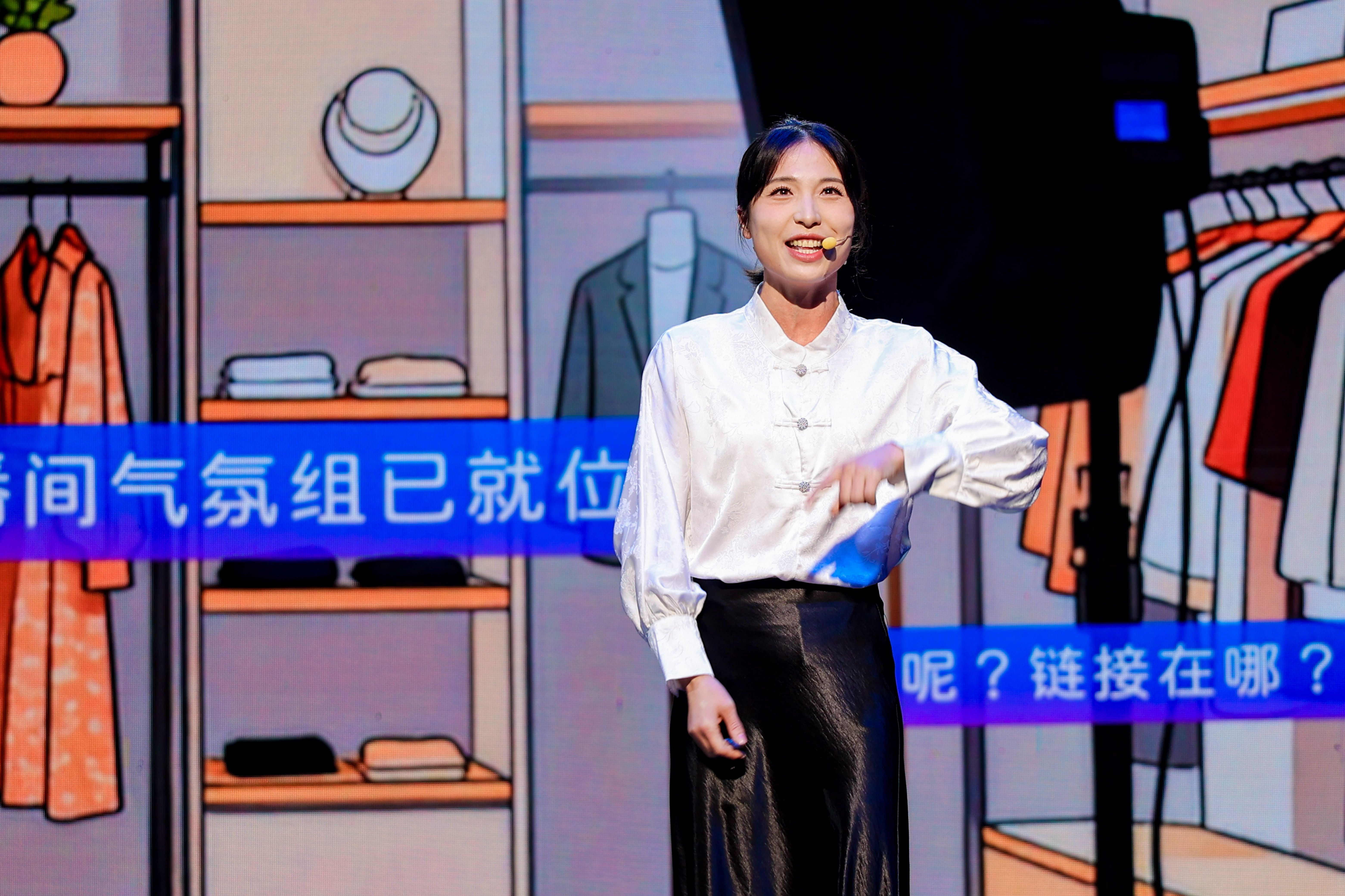 電商主播韓佳丹進行“舞臺虛擬直播間”展示