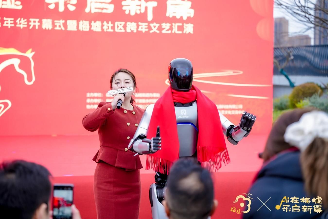現(xiàn)場,均勝電子機器人“梅寶”登臺與主持人趣味互動并表演舞蹈,展現(xiàn)了人機協(xié)作的靈動與趣味,引得現(xiàn)場掌聲與笑聲不斷。同時,雙啟新能源科技的“啟小萌”與“啟小凈”機器人也在現(xiàn)場提供智能迎賓、場景消毒等服務(wù),讓居民親身感受到科技為生活帶來的便利與溫度。