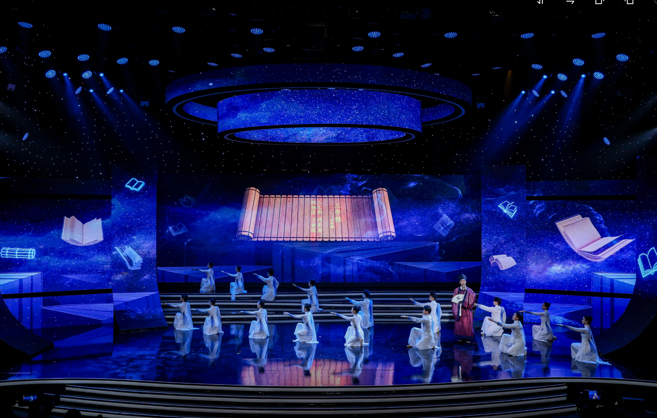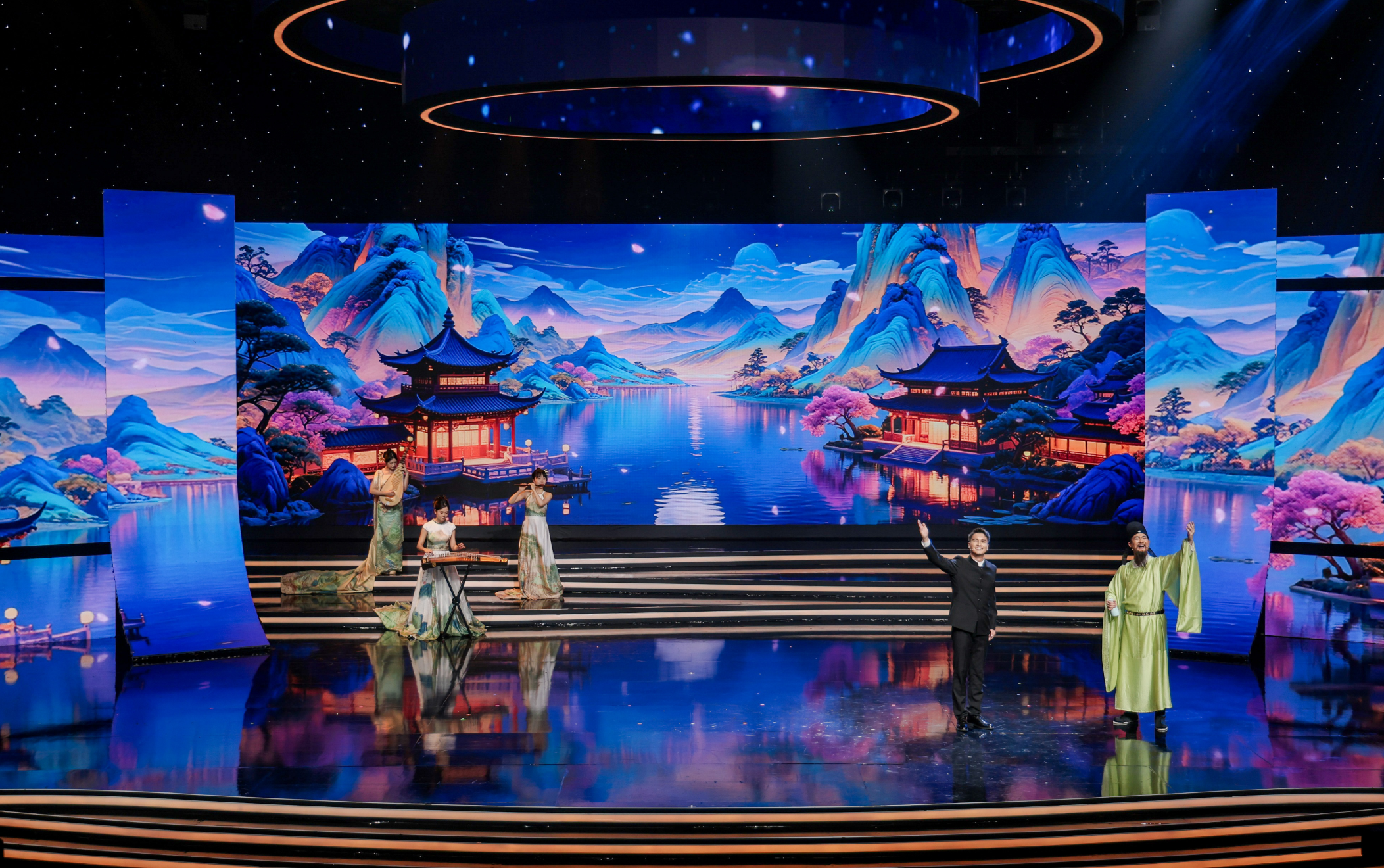 9月5日晚,活動(dòng)在寧波廣電集團(tuán)1200平米演播廳舉行。以朗誦為核心載體,有機(jī)融合音樂(lè)、舞蹈、戲曲等多元藝術(shù)形式,通過(guò)“動(dòng)態(tài)書(shū)頁(yè)”與“海浪交織”的舞美設(shè)計(jì),營(yíng)造出“聲浪入海,文韻流芳”的文化意境,生動(dòng)展現(xiàn)中華文化底蘊(yùn)與時(shí)代精神。