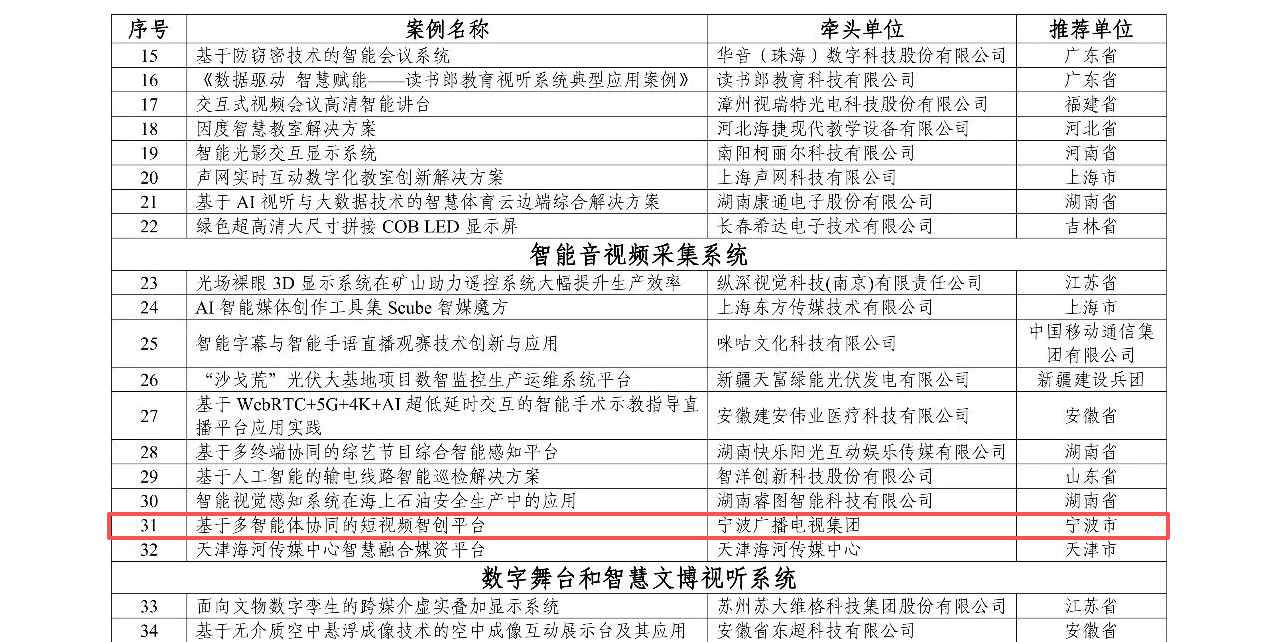 經(jīng)地方推薦、專家評(píng)審及網(wǎng)上公示,工業(yè)和信息化部辦公廳、 文化和旅游部辦公廳、國(guó)家廣電總局辦公廳、國(guó)家知識(shí)產(chǎn)權(quán)局辦公室、中央廣播電視總臺(tái)辦公廳近日聯(lián)合公布了2025年度視聽(tīng)系統(tǒng)典型案例名單,最終確定86項(xiàng)案例入選。寧波廣電集團(tuán)申報(bào)的《基于多智能體協(xié)同的短視頻智創(chuàng)平臺(tái)》憑借領(lǐng)先的技術(shù)創(chuàng)新與應(yīng)用價(jià)值,成功入選。