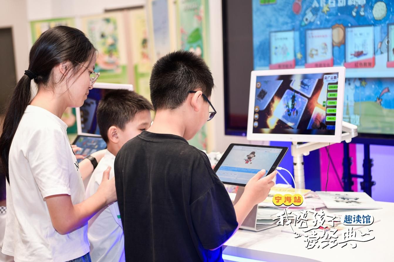 科技賦能與自然融合成為本次巡展活動(dòng)最鮮明的特色,打破了傳統(tǒng)閱讀的靜態(tài)邊界。在數(shù)字閱讀互動(dòng)區(qū),AR技術(shù)讓《西游記》中的孫悟空破云而出,讓航空母艦、遠(yuǎn)古生物從書頁中“跳”入現(xiàn)實(shí),動(dòng)態(tài)場景渲染與空間音頻技術(shù)構(gòu)建起沉浸式故事宇宙,重新定義了兒童閱讀的體驗(yàn)維度。